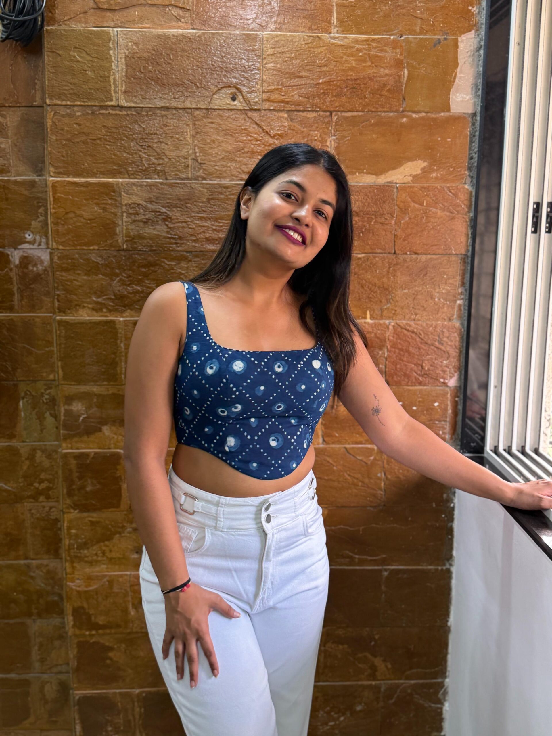 Radiate timeless elegance in our Bahaar Corset Top, Saanjh. Crafted in breathable cotton and adorned with classic Indian-inspired prints, this piece blends traditional artistry with a modern silhouette. Designed with a structured, padded fit, the corset contours the body beautifully while offering comfort and support. Finished with a clean back zip closure, it’s the perfect statement top for effortless day-to-night styling. Pair it with trousers, denim, or skirts for a look that’s rooted yet refined.